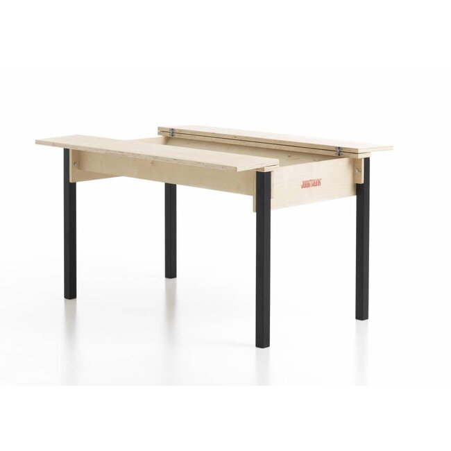 An diesem Designer Kindertisch können zwei bis vier Kinder gemeinsam spielen, arbeiten, basteln und bauen. Mit diesem anziehenden und zugleich praktischen Design Kindertisch schlagen Sie zwei Fliegen mit einer Klappe. Dieses Modell besticht durch seine Schlichtheit und spricht sowohl Kinder wie auch Erwachsene besonders an. Die naturfarbenen Holzplatten in Kombination mit den schwarz lackierten Beinen verleiht dem Tisch einen stilvollen Look. Ein Kindertisch Design, das in jeder Kinderecke unbedingt einen Platz verdient. Unter der Tischplatte verbirgt sich ein riesiges Aufbewahrungsfach zur Aufbewahrung von Spielwaren, Büchern und anderem Kinderspielzeug.