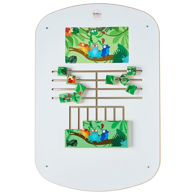 Dieses solide Motorik-Wandbrett verfügt über ein Wandpuzzle mit einem spannenden Dschungel-Motiv. Dieses lehrreiche Wandpuzzle fördert bei Kindern die Fähigkeit zu ordnen und sortieren. Außerdem wird auf spielerische Weise die Motorik trainiert.